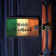 Walsh family surname in English and Gaelic on distressed Ireland flag