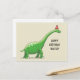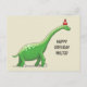 Walter the super cute long neck dinosaur with his red hat on his head is on his way to a birthday party.