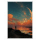 Wanderer Under Giant Crescent Moon Poster