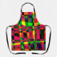 Great color and even though I ordered the kid size, it covers well enough to use during the holidays. I am not a big woman and prefer a shorter apron. I stand 5"6" and the length of the garment goes to mid-thigh. The tie straps fit well at my waist and even though there is no neck strap adjustment, the opening is plenty big enough. I am happy with the size and fit. I am sharing my apron with my 10 year old grandson, too! The color is vibrant and looks good, as shown on the website. The stitching looks strong and reinforced. Photographed is front side and back side of the apron, reinforced straps and coloring. My phone camera may not be the best at showing the details.
