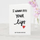 This graphic conveys a sweet and intimate message with simple, bold design. On a clean white background, the words "I WANNA KISS YOUR" stand out in a strong, block font, while "lips" below is elegant cursive. The varying brushstrokes give a handmade feel, adding warmth to the message ❤️💌🍫