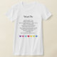My overall review is that the T-shirt is nice, it fits true to size however the font is significantly smaller than advertised and you can't read it. The printing is unreadable and there is a strain to read it. It does not look like the advertised product. Maybe the shirt color is darker or a larger more visible font should have been used. Photos with and without flash and font is barely legible.
