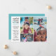 Photo collage adoption announcement with wanted chosen loved adopted in a charming typography design in black, gray, and turquoise. Cute photo adoption announcement with a collage of four photos.