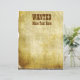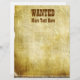 Here's a unique fun, old vintage western style paper letterhead that you can easily add any name or any custom text below the word "WANTED" in brown, big text. You can easily change font style, font color, even change the text entirely. Or delete text completely to hand write your later. Great for funny flyers, pranks, jokes, etc. to hand out, display, or post and hang up.