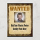 Cool Vintage Style Western "Wanted Poster" features wood plank fence background with faux aged parchment paper weathered look poster. Add your custom wanted poster text and photo for an awesome special effect. Your photo takes on an aged look with this fun old-time western cowboy bandit design.