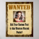 Cool Vintage Style Western "Wanted Poster" features wood plank fence background with faux aged parchment paper weathered look poster. Add your custom wanted poster text and photo for an awesome special effect. Your photo takes on an aged look with this fun old-time western cowboy bandit design.