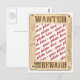 ~ Fun postcard to personalize with a photo of your 'Most Wanted'! ~ Use as an information card, as an invitation, a 'Thank You' note or for a quick note of hello and greetings card. ~ Add your favorite photo and resize for a perfect fit ~ Text can be printed, currently at not extra charge. ~ Choose font style, color, size and placement of your message. ~ Click the CUSTOMIZE button to get started. ~ Currently, this design can be transferred to hundreds of products. ~ ~ The Frames4you Store has photo frames for holidays, birthdays, special events or just for fun.