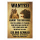 Reproduction of a vintage wanted poster with two mug shots of a squirrel and a $50,000 reward for his capture. The type font is in the style of the old west and the poster looks like it's printed on old paper that has turned brown with age. The poster tells of Sammy the Squirrel's crimes of stealing bird seed, digging up flower beds, and taunting the dog and describes Sammy's big whiskers, frisky tail, and fast-moving ways. This humorous tongue-in-cheek wanted poster would be perfect for any squirrel lovers, or anybody who has had problems with squirrels and their antics.