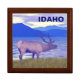 An elk, known as a wapiti to Native Americans, on the shore of Lake Pend Oreille in the Idaho panhandle. Text reading "IDAHO" also appears.