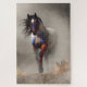 Somewhere in the American Wild West, a powerful roan coated war horse, wearing red and blue Native American war paint, approaches out of the fog. His dark mane and tail blow in the winds of the prairie. He's headed right at you, the viewer, with a look of determination. Better get out of the way of this warrior.