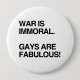 WAR IS IMMORAL. GAYS ARE FABULOUS PINBACK BUTTON