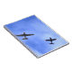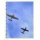 A note book featuring a photo of two war planes in formation.