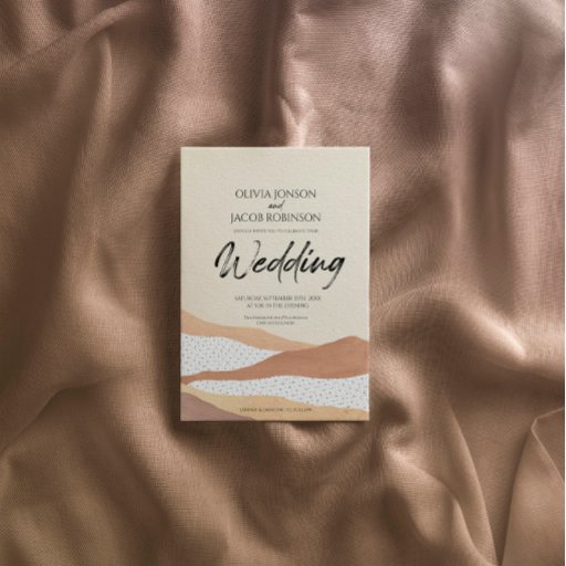 Save the date card in boho wedding style, abstract desertscape, sand colors
