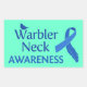 Warbler Neck affects birders each spring season, coinciding with migration and heightened birdwatching activities. This original design features the cerulean blue warbler neck awareness ribbon, which is partially transformed into a feather on one side. Show your support for warbler neck awareness with this original design which also features a warbler (looking up, of course) in silhouette.