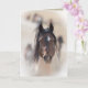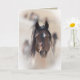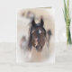 This wild stallion named Warbonnet is running toward the waterhole in the McCullough Peaks Herd Area in Wyoming. There is another image of him inside the card. Both images are by Carol Walker.