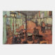Ward in the Hospital in Arles by Vincent van Gogh is a vintage fine art post impressionism daily life portrait painting featuring patients, nurses and doctors in the hospital. Some are gathered around a hot potbelly stove for warmth.