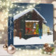 A warm and inviting Christmas ski cabin, nestled in the snow on a winters night is featured on this personalized Christmas holiday photo album binder.
