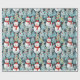 Christmas wrap with snowmen in warm red scarves and a pretty blue pine tree background.