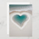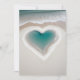 A heart-shaped pool of water with aqua hues is nestled within a sandy beach, surrounded by foamy waves. The ocean meets the shore in the background, creating a serene and romantic scene.