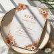 A refined and inviting design inspired by autumn tones, featuring soft arrangements of orange, cream, and beige florals. The composition is framed with delicate botanical elements in each corner, creating a balanced and harmonious layout. Clean structure and elegant typography enhance the timeless, romantic aesthetic with a warm, nature-inspired feel.