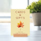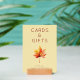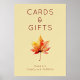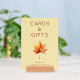This wedding tabletop sign features a minimalist design with a warm, earthy color palette of beige and autumnal hues. The centerpiece is an illustrated leaf in shades of red and yellow, rendered with a watercolor effect that adds softness and depth. Elegant serif typography highlights the words "CARDS & GIFTS" at the top, while a gentle "thank you" message sits below, creating a heartfelt and inviting atmosphere. Perfect for expressing gratitude at your special event, this sign combines seasonal charm with timeless style.