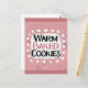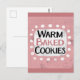 "Warm baked cookies" is a fun text design with a white accent shape surrounded by white whimsical textured dots.