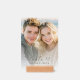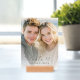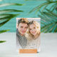 This wedding table card features a warm and intimate photograph of two individuals, creating a personal and inviting atmosphere. The design uses soft beige and light gray tones with natural lighting to evoke a cheerful and serene mood. Elegant cursive script for "table 12" is paired with simple sans-serif text for names, ensuring readability and style. Perfect for adding a touch of elegance and personalization to your wedding reception, this card combines realistic photography with clean typography for a cohesive look.