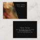 Warm, blurred photo beside solid black diagonal business card