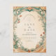 An elegant Art Nouveau wedding design with a romantic arched floral frame in warm terracotta, coral, and muted green tones. Featuring intricate ornamental leaves and classic typography, this piece brings a nostalgic European feel perfect for refined outdoor or destination weddings. The composition blends natural softness with timeless charm.