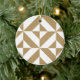 Warm Brown Geometric Deco Cube Pattern Ceramic Ornament