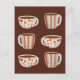 features coffee cup design on postcards