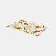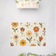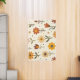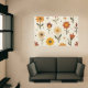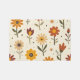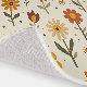 This carpet features bright blooms across a soft, cream background, showcasing a whimsical array of flowers in warm shades of red, orange, and yellow. Each flower is playfully illustrated with distinct shapes, featuring vibrant petals and bold centers, complemented by scattered dots and delicate leaves. The cheerful composition evokes a joyful and inviting atmosphere, perfect for springtime energy.