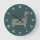 Warm Gold Gradient Paw Print Dog Silhouette Fabric Round Clock