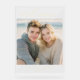 This wedding sign features a warm and inviting beach scene with two individuals sitting closely together, capturing the essence of relaxation and celebration. The design is framed by an elegant black border with gold cursive text at the top reading "welcome," while the bottom showcases customizable names and date in a simple serif font. The color palette includes soft grays, beiges, and blues from the natural setting, complemented by striking gold accents on the black background. With its modern minimalist aesthetic, this sign conveys a joyful and refined mood, perfect for welcoming guests to a special occasion.