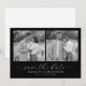 This wedding save the date features a split composition with two black-and-white photographs of a couple in an outdoor setting, capturing moments of intimacy and connection. The monochromatic color palette emphasizes clarity and detail, creating a timeless and elegant look. The design includes cursive script typography for "save the date" and clean serif fonts for customizable event details, adding a personal touch to this straightforward yet sophisticated template. Perfect for conveying warmth and affection, it sets the tone for a memorable celebration.