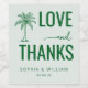 This wedding wine label features a minimalist design with a light green background and dark green accents, creating a soothing tropical vibe. The layout includes a stylized palm tree illustration paired with elegant serif typography that reads "LOVE and THANKS," conveying warmth and gratitude. Customizable placeholders for names and dates allow personalization, making it perfect for celebrating special occasions like weddings or anniversaries. The clean lines and balanced composition give the label a modern yet classic feel, ideal for adding a touch of sophistication to your event.
