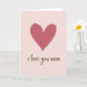 This card features a large, symbolic heart near the upper center, painted in a muted rose tone with visible brushy texture that feels like a tender gesture shared between close hearts ❤️. The background is a soft blush pink, smooth and quiet, giving the main shape plenty of breathing room. The heart sits slightly higher than the midpoint, as if it’s gently lifting the mood of the whole design. Beneath it, a short message is placed in the lower half, written in flowing, cursive-style lettering without looking overly formal. The text appears in a warm golden-brown color with a faint metallic sparkle that catches light like a small, affectionate wink 🌼. The spacing is minimal and calm, keeping the focus on the gentle contrast between the rosy heart and the pale pink field. The overall layout stays simple and intimate, with the heart above and the shimmering words centered below on the blush background.