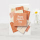 This card centers on a warm peach-orange square with a white dotted border, ornate corner details, and a greeting set in elegant white lettering near the middle. Around it, several coordinating paper pieces are scattered and slightly overlapped on a white background, like a cozy desk moment where someone carefully arranged keepsakes for a loved one ❤️. The surrounding cards use soft cream, blush, and terracotta tones, and their fine patterns resemble lace-like curls and botanical swirls. Some details look lightly pressed into the paper, while others have a faint metallic sheen that catches the light with a gentle glimmer. Small floral accents, like dried petals or delicate cut-paper blossoms, sit near the edges and corners, adding a tender, thoughtful touch 🌼. The lighting is bright but diffused, creating soft shadows between layers so the arrangement feels intimate, like notes exchanged between close friends or partners. The main greeting remains the focal point, with the white text standing out clearly against the peach-orange center while the surrounding designs stay quieter in pale, warm shades. In the corners of the central square, tiny decorative flourishes frame the text as the layered cards fan outward across the white surface.