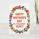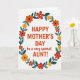 This card features a centered message on a bright white background, framed like a gentle hug from family and friends ❤️. The main text reads “HAPPY MOTHER’S DAY to a very special AUNT!” and it sits squarely in the middle in a strong orange-red color. “HAPPY MOTHER’S DAY” and “AUNT!” appear in a simple, easy-to-read letter style, while “to a very special” is smaller and slants slightly for a softer, more affectionate look. Encircling the words is a rounded floral wreath that feels like a cheerful bouquet gathered just for her 🌼. The flowers are simplified and sunny, mixing reds, oranges, and yellows with dark or golden centers, and a few petals show light outlines for extra definition. Thin dark stems weave between the blooms, with leaves in deep teal and rich green adding a calm contrast around the warm colors. The wreath forms an even ring around the text, with the orange-red lettering standing out crisply against the open white space.