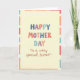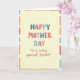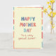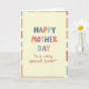 This card features a gentle, pale cream background with a cheerful Mother’s Day message centered near the top in irregular, multi-colored letters that feel friendly and affectionate ❤️. Just beneath it, a smaller line in soft crimson, flowing lettering adds a tender, close-to-the-heart dedication, as if spoken quietly to someone you love. The text is stacked in two parts, with the brighter headline drawing the eye first and the red line sitting slightly lower as a warm follow-up. Around the edges, a border of loose rectangular patches creates a cozy frame, like little paper pieces placed with care. The patches shift through pastel coral, muted blue, and soft peach, and their uneven edges give the design a relaxed, human touch. The overall layout leaves plenty of open space in the center, keeping the message easy to read and letting the colors breathe 🌼. The border segments repeat all the way around, with coral and blue pieces alternating loosely along the sides and corners.