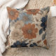 Warm Orange Beige Navy Blue Fall Floral Throw Pillow