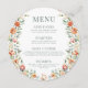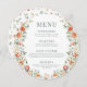 Warm orange flower boho round Menu Card For Plate
