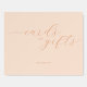 This wedding tabletop sign features a minimalist design with a pale peach background and soft gold cursive typography that reads "cards and gifts," accompanied by a smaller "THANK YOU" in a serif font. The layout is balanced and centered, emphasizing simplicity and elegance through ample negative space and gentle color contrasts. Perfect for expressing gratitude at your event, this understated yet sophisticated sign adds a warm touch to any celebration.