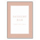 This wedding tabletop sign features a minimalist and modern design with a soft peach background adorned with subtle pinkish-white polka dots. The central white space is framed by a thin double border, creating a clean and inviting layout. Elegant serif typography highlights the "DESSERT BAR" heading, while a friendly sans-serif font invites guests to "PLEASE TAKE A TREAT!" The overall aesthetic exudes warmth and sophistication, making it perfect for enhancing the dessert station at your event.