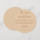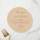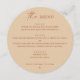 This round wedding menu features a clean, well balanced layout with a script accent paired with clear, structured text. The circular shape adds a subtle visual detail while keeping the overall look minimalist and uncluttered. Menu sections are easy to scan, making it simple for guests to follow each course without distraction. The peach sand background gives the menu a soft, natural tone that works beautifully with neutral palettes and warm toned table settings. Perfect for wedding receptions, plated dinners, and curated menu setups where a clear and elegant presentation is important. This menu pairs especially well with modern minimalist, earthy, and contemporary wedding styles. Works best for fall, late summer, and warm neutral weddings.
