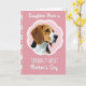 The front design shows a stylized dog in profile with long, floppy ears and a tri-color coat of warm brown, crisp white, and deep black, looking outward with a tender, attentive gaze that feels like quiet companionship. The portrait sits inside a soft scalloped, cloud-like frame that floats on a wide pastel pink background, giving the scene a gentle, romantic warmth ❤️. Above and below the framed dog, rounded hand-drawn lettering appears in a darker pink tone, spaced to balance the illustration without crowding it. Along the left side, a decorative vertical border adds detail with repeating circles filled with simple flower shapes and scattered dots on a white strip. The contrast between the smooth pink field and the patterned border makes the central dog feel even more cherished, like it’s being admired from across the room. Small floral accents in the border echo the softness of the background and add a friendly, caring touch 🌼. The overall layout keeps the dog centered while the text curves slightly to follow the frame’s shape. The scalloped outline is pale and airy, with gentle rounded edges that resemble a floating cloud.