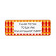 These return address labels have an Art Deco design of a plaid with thick and thin lines in red, orange, and yellow.