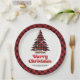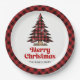 Warm Rustic Plaid Tree Christmas Party Paper Plate