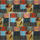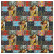 Rectangular patches of loopy designs and sea turtle images in warm colors pattern this pretty fabric.