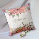 This pretty pillow has a top and bottom border of warm watercolor spring flowers. Colors include rosy pink, orange red, violet and green. A gold confetti overlay adds a bit of sparkle and interest. At the center front is your custom text in matching green; you may delete or change the text easily. The back of the pillow has the same design without the text field.